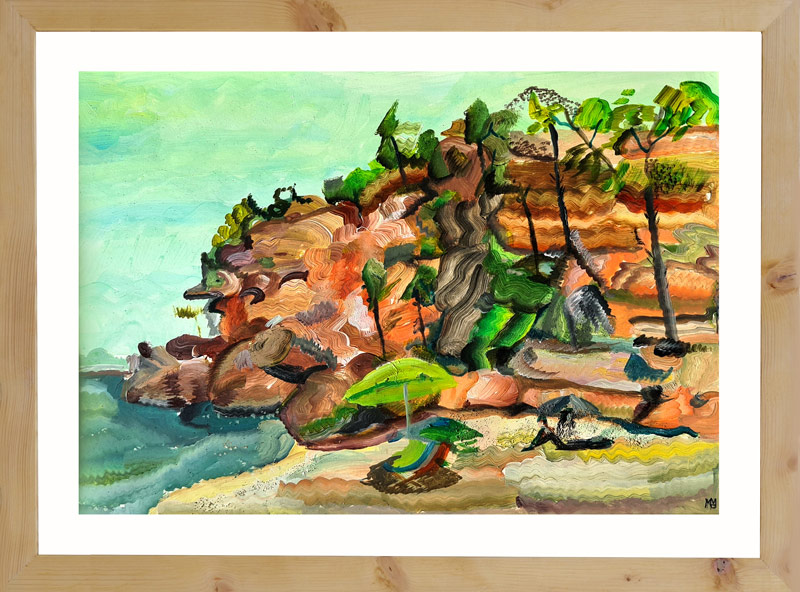Cap Roig Beach 2024, acrylic & sand on paper, 42x29cm, € 150 (unframed)