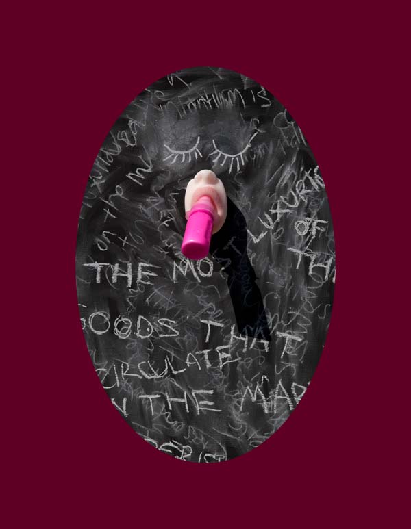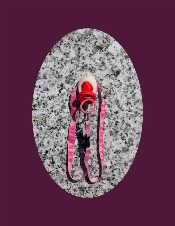 Pacifier considers the process of sexualisation in consumer culture using sweets, sex toys and nail art practice dummies. Sexualised commodities transform the consumer from a living breathing sexual body into an erotic spectacle – a surface appeal without substance. Decorative and sexual characteristics efface the other aspects of the body. The commodity-body is fragmented into erotic signs and transforms those who covet it into passive, distracted erotic consumers. The objects in Pacifier are inanimate and bodily; abstractions and simulations at the same time. They are inhuman and yet contaminated by flesh.